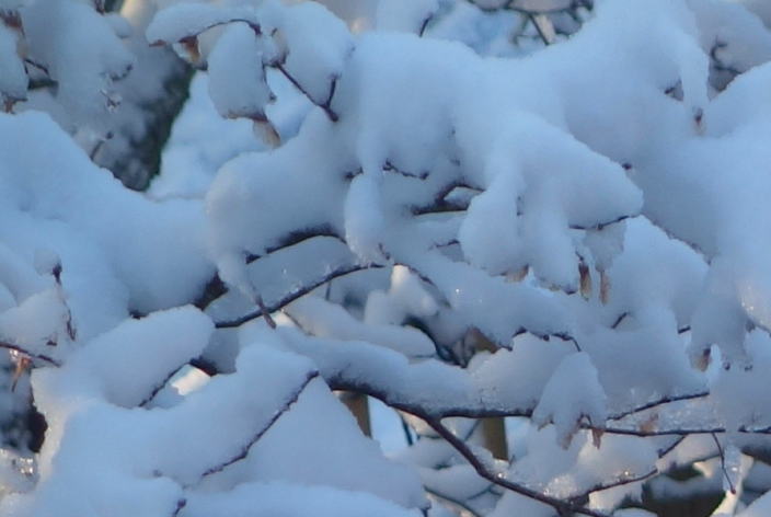 そしてヒヨドリに降りつもっています