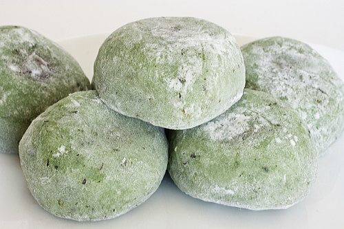 がります。草餅を丸めますが、形は一定にはいきません。それでも、草餅は春の色合いと香